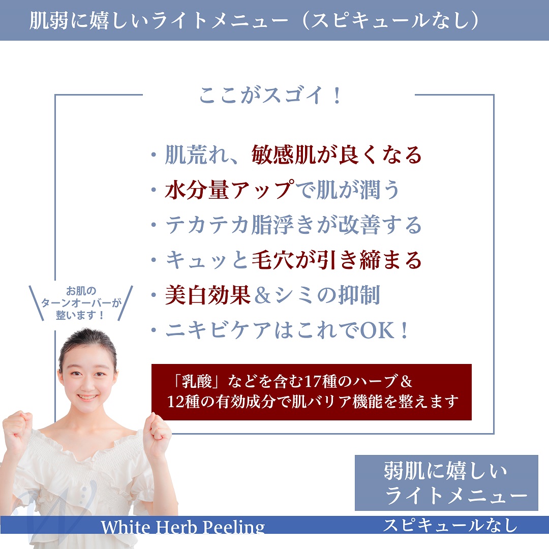 なぜなら… ホワイトハーブピーリングは敏感肌にもOK!かなり広範囲の肌トラブルにGOODだから!